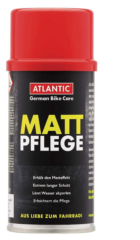 Das ATLANTIC Matt-Pflege Spray ist ein speziell entwickeltes Produkt zur Pflege und Erhaltung von matten Oberflächen. Mit einem Volumen von 150 ml in einer praktischen Sprühdose bietet es eine einfache Anwendung, indem es einfach auf die Oberfläche gesprüht und anschließend abgewischt wird. Das Spray schützt effektiv gegen Regen und Schmutz und verhindert Korrosion, wodurch die Notwendigkeit für häufiges Reinigen reduziert wird. Es eignet sich ideal für Fahrräder mit matten Lackierungen sowie für andere matte Metalloberflächen.