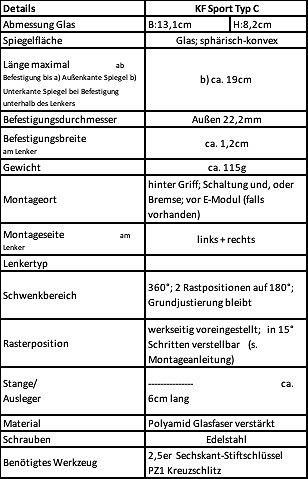 Produktinformationen "Krampe Lenkerspiegel KF Sport Typ C, klappbar Lenkeraußenklemmung, rechts"