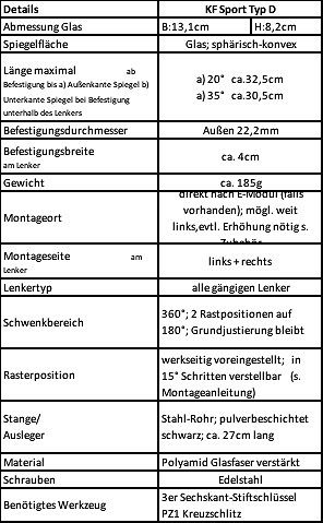 Produktinformationen "Krampe Lenkerspiegel KF Sport Typ D 20°, klappbar Lenkeraußenklemmung, links"